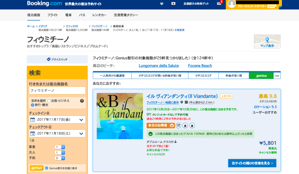 今回私はBooking.comを通して、ローマ空港近くのB&Bを予約しました。