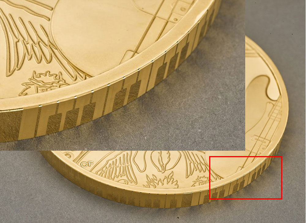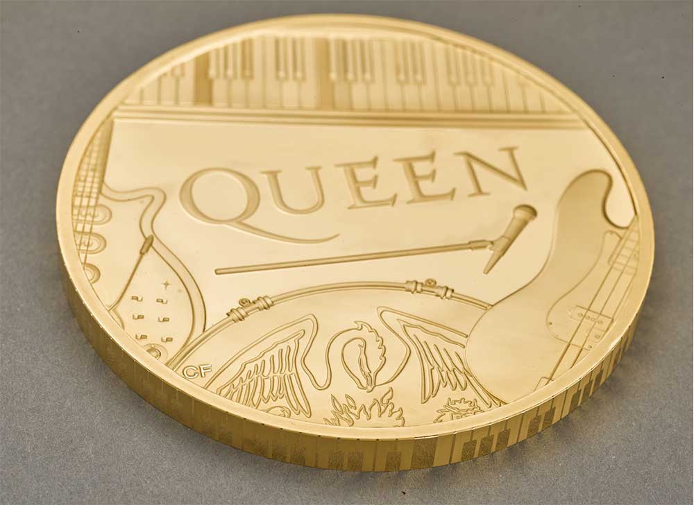 写真の1キロ金貨は、ロイヤルミントが伝説のRockバンドQueenをイメージしデザインしました。