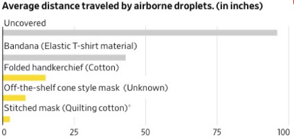 Wall Street Journalマスクを着用しない場合(Uncovered)、飛沫の拡散距離は約100インチに及びます。