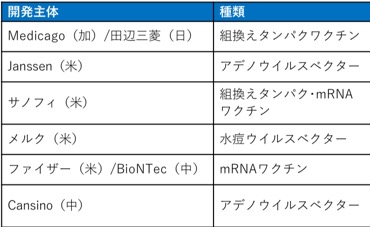 国内ならず、世界各地で様々なタイプのワクチンのパイプラインが走っています。