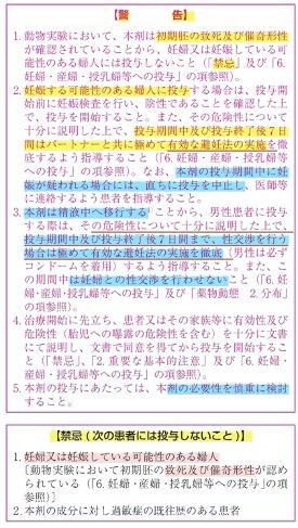 アビガン錠使用における警告