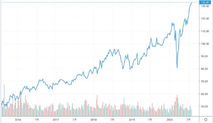 Tradingview他方で米国株をはじめとした世界の株価指数は、コロナ前の水準を回復しつつあり、ハイテク株で構成される米ナスダック指数やS&P500指数は、過去最高値を連日で更新し、ナスダックに至っては3月の最安値から50%近い上昇率となっています。