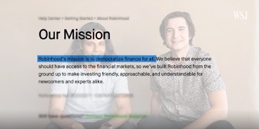 Wall Street Journal金融界の新規参入者が利用する、ロビンフッド社もまた、金融界における新規参入企業です。