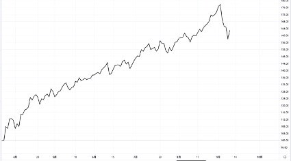 世界一の活況を呈す、米ナスダック株価指数は、3月の底から80%近くの急騰を見せています。