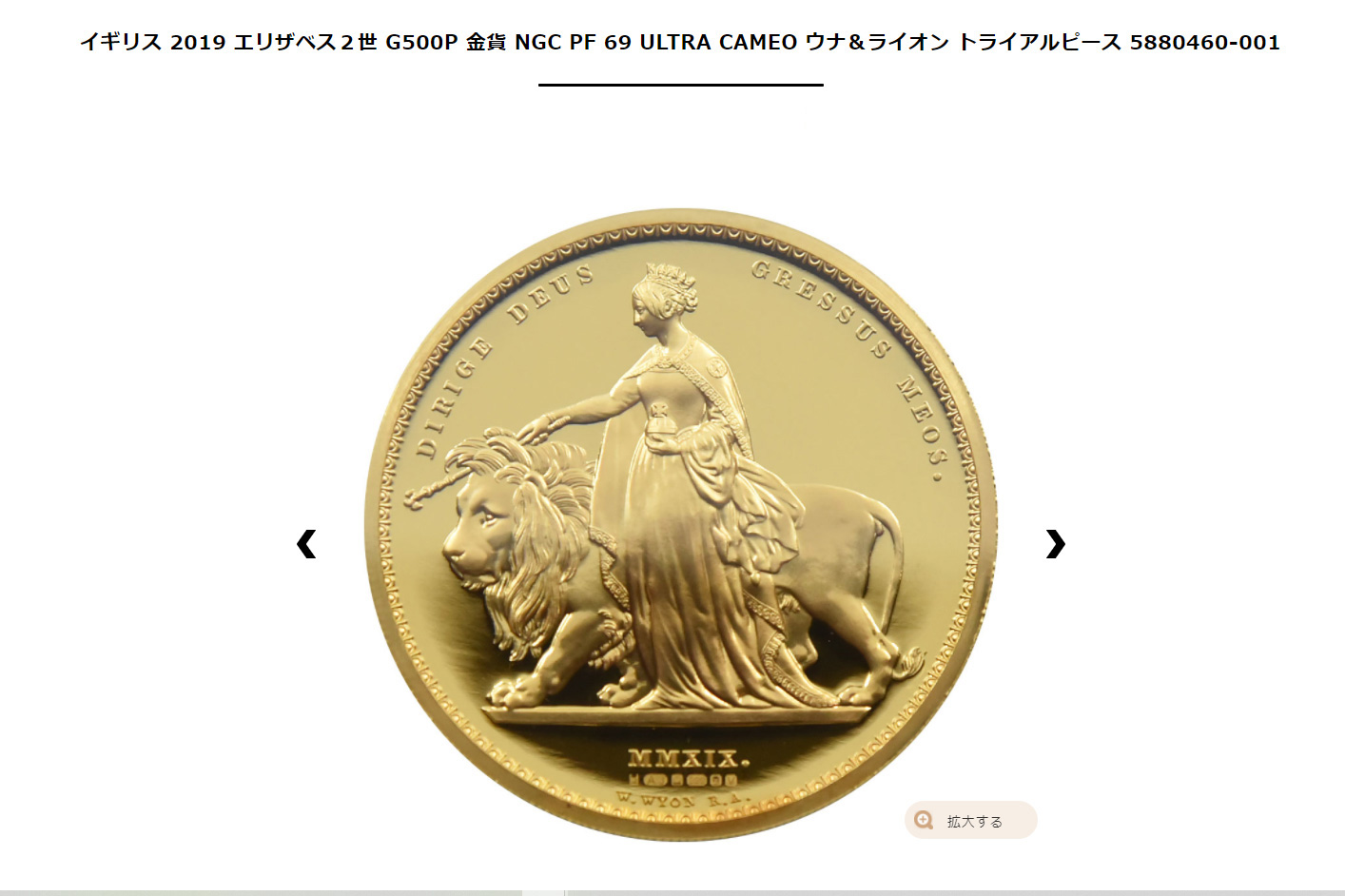 この度、そのようなモダンコインの歴史に名を遺す、2019年ウナ&ライオン5オンス金貨をコインプラザにご出品いただきました!