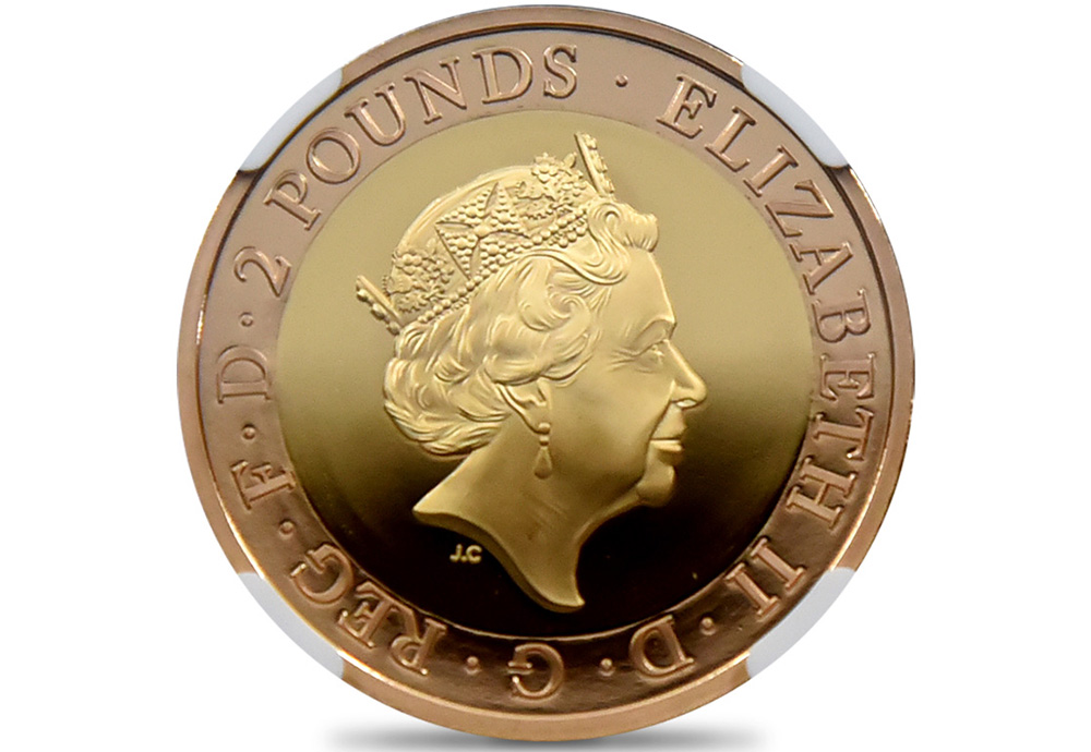 表面にはロイヤルミントの主任デザイナー、ジョディ―・クラークによる荘厳極まりない傑作「エリザベス女王の第五肖像」が刻まれており、